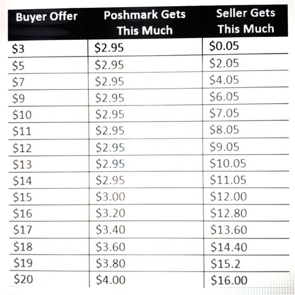 Detailed chart showing Poshmark's fee structure for various buyer offers.