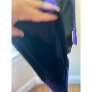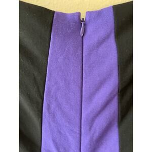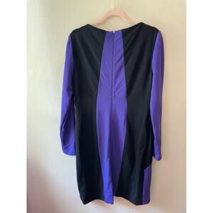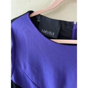 Professional dress by Carlisle, marked size 12. Purple and black color block dress, zip up back. Long sleeved, lined.