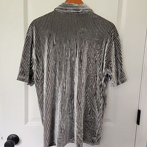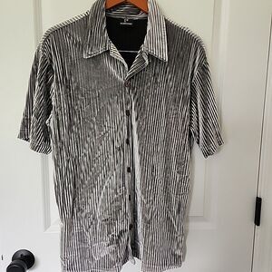 Make a statement with this stylish silver-gray velour short sleeve button down shirt. Size mens large. Ribbed design is very cool. Priced to sell.