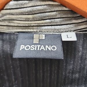 Positano Velour Short Sleeve Button Up Club Shirt Mens Size L Silver Ribbed VTG