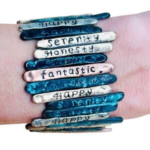 Positive Affirmation Words Earth Tones Metal Stretch Bracelet