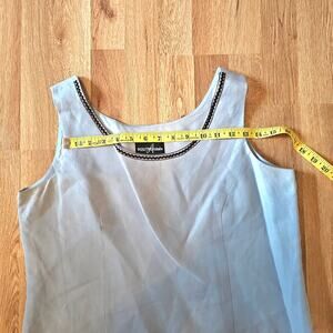 Positive Attitude 2pc Baby Blue Tank Top Linen Jacket Brown Embroi Beaded Flower