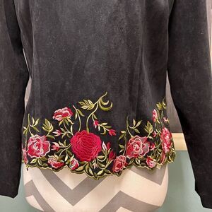 Positive Attitude 90’s micro suede long sleeve floral embroidered top