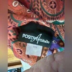 Positive Attitude Rayon Abstr Floral Sz 15/16 Vintage Button Frt Elastic Waist