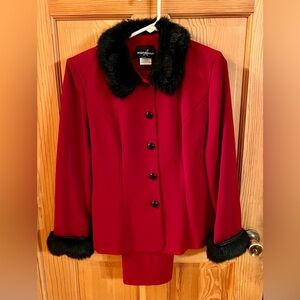 Positive Attitude Size 6 two-piece Skirt and Blazer Set Faux Fur Collar Cuffs