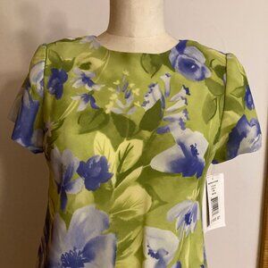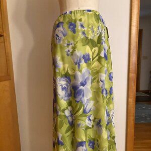 Eye Catching Positive Attitude skirt set in green with blue flowers. Two piece, fully lined, short sleeve and beautiful flowing set is great for spring and summer! Excellent condition, get it before it is gone.