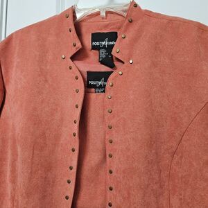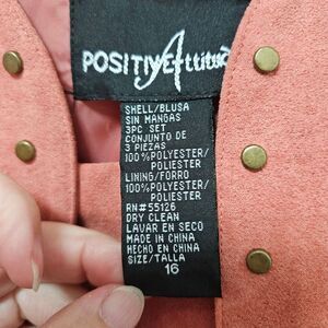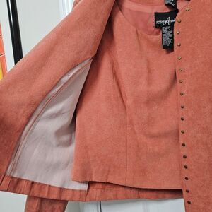 Positive Attitude Tank Blazer Set Women’s 16 Peach Salmon Faux Suede Studded EUC