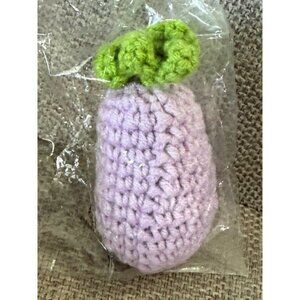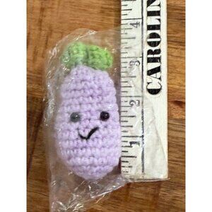 Positive Eggplant Mini Knitted Knit Purple Green Face Smile Toy Small Plush New