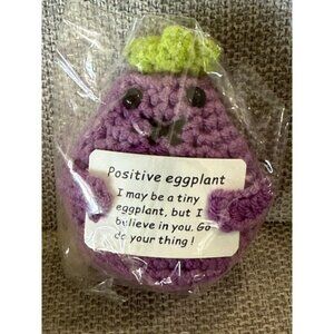Positive Eggplant Motivational Card Mini Knitted Knit I believe in You Go New