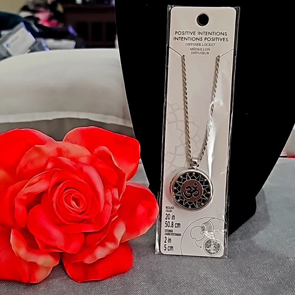 NIP Positive Intentions Diffuser Locket. Silver Tone chain and locket. Chain