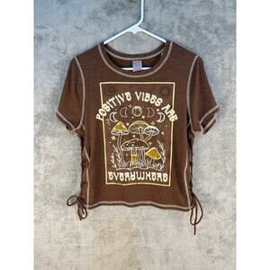 Positive Vibes Are Everywhere Mushrooms Ribbed Side Tie T-Shirt Juniors XXL, in great condition. Cropped.