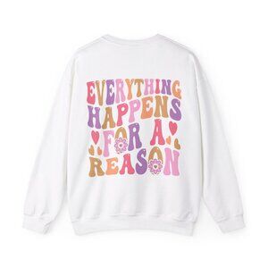 Elevate your wardrobe with our stylish and meaningful "Everything Happens for a Reason" sweatshirt! Crafted on the reliable Gildan 18000 sweatshirt, this cozy garment offers both comfort and inspiration in one package.
