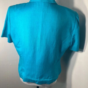 Positive Attitude 14P blouse zip front 55% linen 45% rayon embroidered designs throughout the front of the blouse contains lining and shoulder pads
