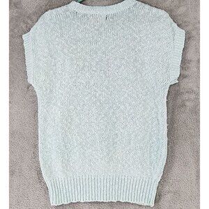 Cool & comfortable women's mint green, floral embroidered, cap sleeve, sweater.