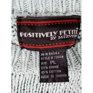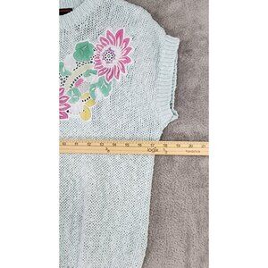 Positively Petite Sweater Womens PL Mint Green Knit Floral Embroidered Vintage