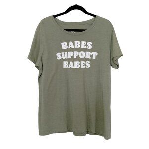 PositiviTees Plus Size 2X Graphic T-Shirt Babes Support Babes Sage Green