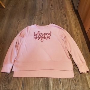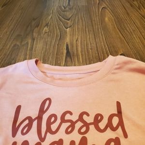 Positiviti Tees Blessed Mama Top Long Sleeve Tee Shirt Pink Maroon Side Slits L