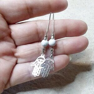 Positivity + Prosperity + Blessings! Hamsa ~ Hand of Fatima ~ Howlite Earrings