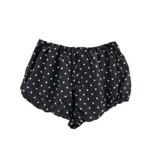 Posse 'Aurelia' Black Tencel Short Size M: lightweight, non-stretch seersucker, gathered waist, hook-and-eye and hidden zip at back, on-seam side pockets, lined, measurements: 14 inch width x 11.5 inch length.