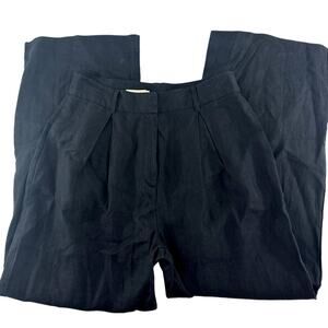 Linen trousers by Posse embody the essence of contemporary elegance and captivating simplicity. Crafted in a deep black hue, they impress with their wide, straight legs that drape softly along the silhouette. The high, carefully accentuated waist visually elongates the figure, while subtle front pleats bring a feeling of lightness and a modern touch.