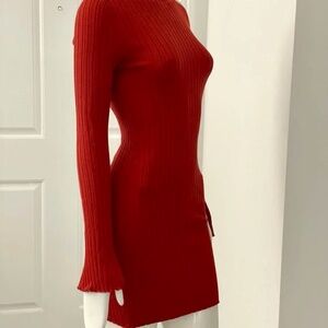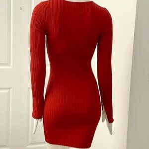This chic long sleeve burned red knit dress is a must-have for your wardrobe. Its vibrant color and sleek design offer a stylish look for any occasion.