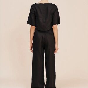 Posse Presley Black 100% Linen Wide Leg Trousers Pants Size S