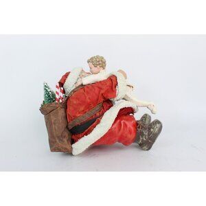 The emotional theme of Santa giving a warm hug makes this one of the more beloved Clothtique designs from the 1990s. Displays wonderfully on a mantel, shelf, or within a Christmas village scene.