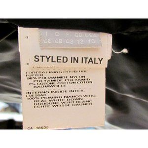 FABRIC: 100% POLYESTER; LINING 98% POLY-AMID,2% COTTON; INTERIOR 100% DOWN