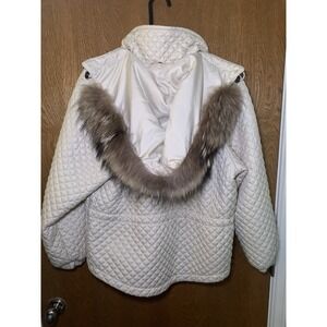 Post Card Italy Quilted Jacket Ivory Cream Removable Fur Trim Hood Sz 4 Eu 40