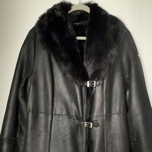 Post Card womens black long shearling lamb coat Size 10. Perfect condition, worn once. Really beautiful, warm and stylish.