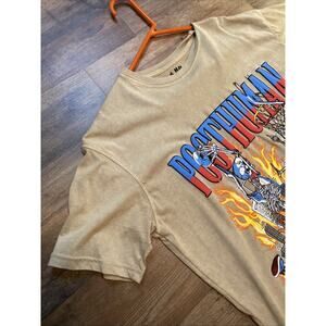 Fits a little large for a medium but looks great as kinda a relaxed fit. Worn 1 time. Great condition. Puffer print on the front.