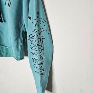Post LA Adaptation Aqua and Black Graphic Long Sleeve Crop Hooded Sweater Small
