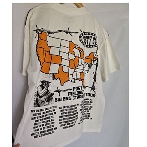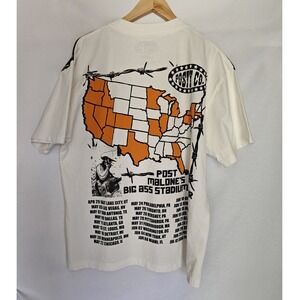 Keywords: Post Malone, Concert Tee, Tour Shirt, Graphic Print, Music Apparel, Streetwear, Casual Wear, Limited Edition, Collector Item, Artist Merch, Stadium Tour, White Tee, Mens Fashion