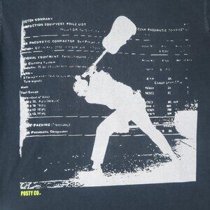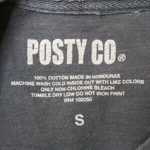Posty Co. Black crewneck graphic t-shirt. Front has white silhouette graphic of Post Malone smashing his guitar on stage. Reads “live” across the back in yellow.