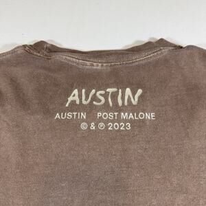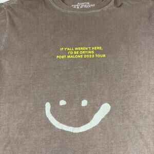 Post Malone Smiley Band 2024 Tour Logo Graphic T-shirt Brown Adult Small
