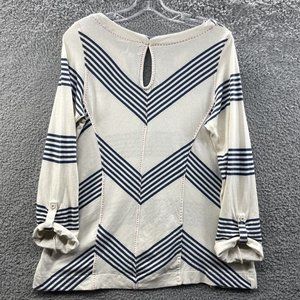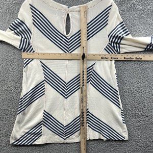 Postage Stamp Top Women's X Small Cream Striped Notch Collar Keyhole Back Top