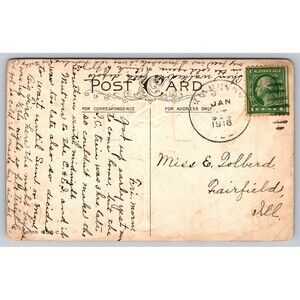This product is a single postcard featuring a design of a happy new year, candle, poinsettias, horseshoes, and seasons greetings. It is an original printed (lithograph) postcard from the era of divided back (1907-1915). The postcard is embossed and measures a standard size of 5.5 x 3.5 inches. It was posted in 1916 and is a perfect collectible item for those interested in vintage postcards and greetings from the past. Pre-owned, well used. Posted in 1916 with a one cent stamp. Has edge, corner and surface wear. See photos for condition and wear. Message mentions and large fire and riding on several different railroad lines. Great Bundle Item!