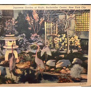 Postcard Japanese Garden At Night Rockefeller Center New York City NY Vintage