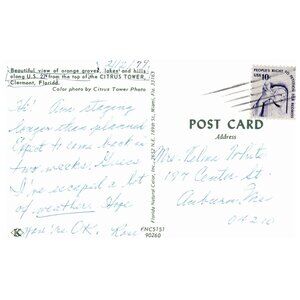 Postcard Orange groves lakes hills U.S. 27 top of Citrus tower Clermont Florida