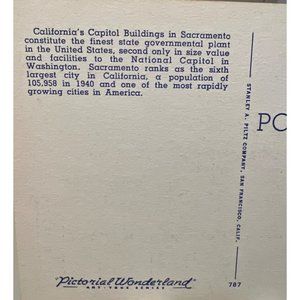 A vintage postcard featuring an aerial view of Sacramento, CA's State Capitol and Business District. Woven linen pattern printed on quality paper. One size, suitable for all genders.