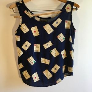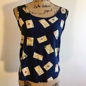 Vintage postcard tank by Tracy Evans. Lightweight rayon fabric. Some piling.