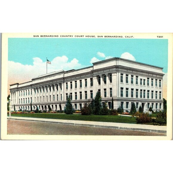 San Bernardino County Court House (Misspelling county as Country on Post Card) Built in 1927 as replacement for former Court House damaged during 1920's earthquake. Bright Colors Unused. 20s era.