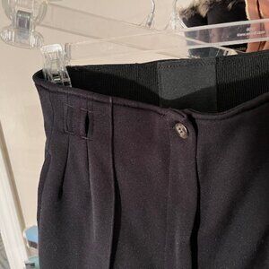 Italian designed Postcard black ski pants with stirrups size 8(44) slim form fitting/high waisted elasticized waistband/straight leg/2 front zip slash pockets/zip and button front/invisible belt loops/water repellant/machine washable