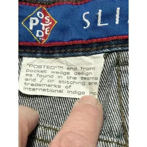 Posted Dark Blue Slim Straight Leg High Rise Jeans Sz 3/4 Waist 27 Wedge Pockets