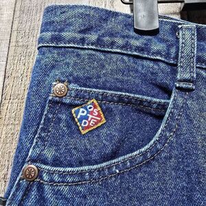 Details: straight leg, high waisted, little stretch, logo patches, dark wash, zip and button closure