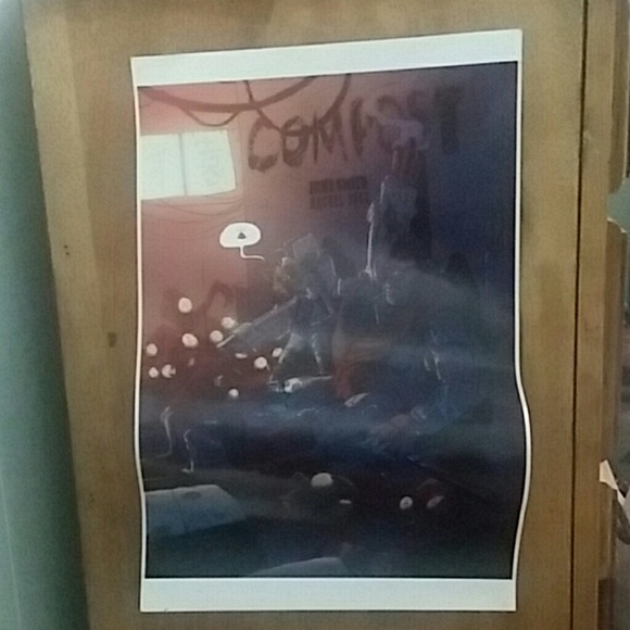 Cool poster that shows a zombie apocalypse with animal-human hybrid survivors. No damages, I used wall putty so there are no puncture holes.