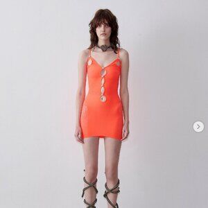 Brand new, never worn. Orange dress, comes still in packaging and extra button.
