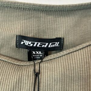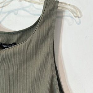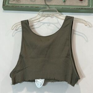Poster Girl Ribbed Cropped Distressed raw hem tank top army green new w tag XXL