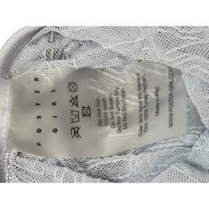 Poster Girl Trophy Sheer Lace Jumpsuit Thong Feather Cuffs Set Sexy Blue Size L