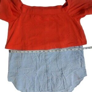 Postmark Anthro Drew Off the Shoulder Layered Reddish Orange Denim Top Size S